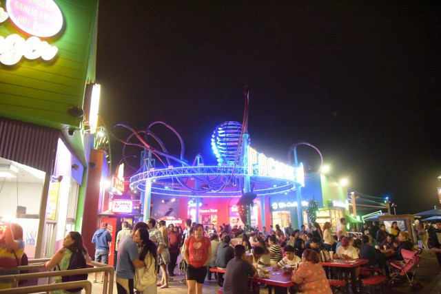 夜のサンタモニカピアで軽食をすませてホテルを見つけたりして