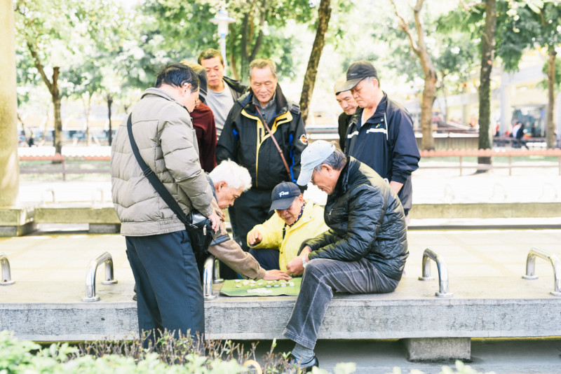 将棋かな?公園でなんかすごく盛り上がっていて、良いなぁ。